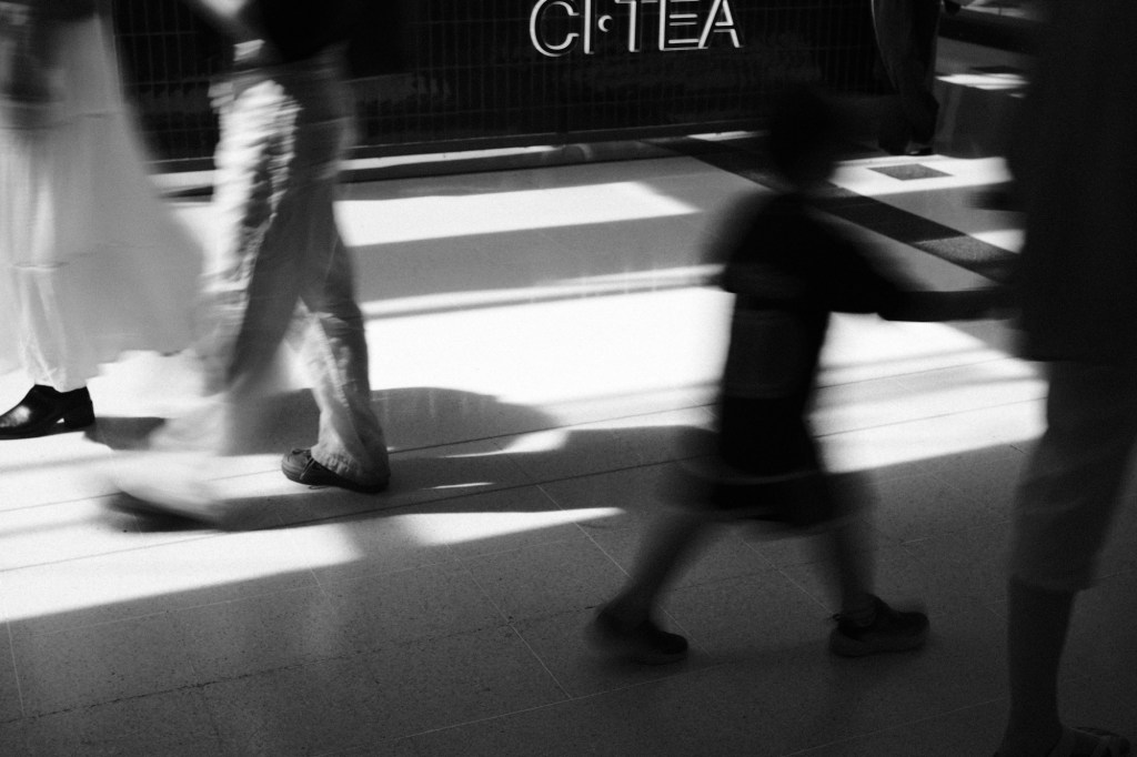Inside the main shopping centre, there were beautiful shadows cast from the midday sun. many shoppers in white clothing too – I could feel a Trent Parke moment coming.