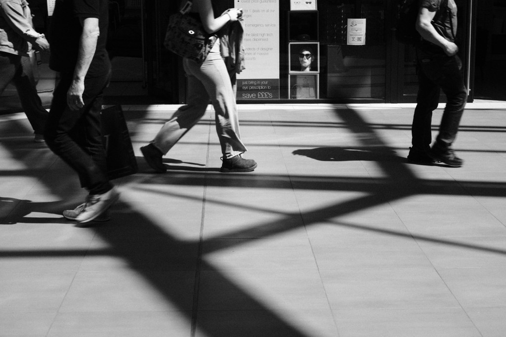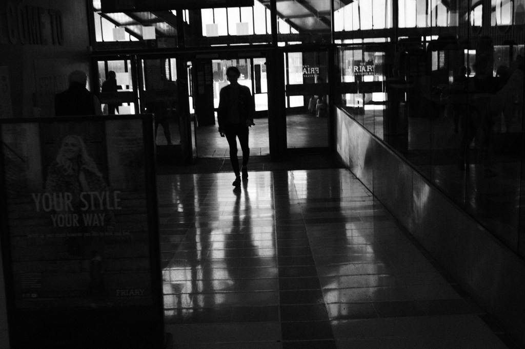I love guildford for its wide, car-free high streets and narrow alleyways. Many indoor shopping micro-malls with glass roofs which let light through and creates many interesting shadows.