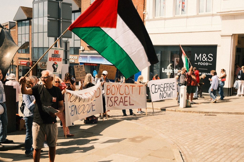 As I walked outside the shopping centre onto the main high street, I heard loud, microphone amped shouting. I scurried towards it quickly.