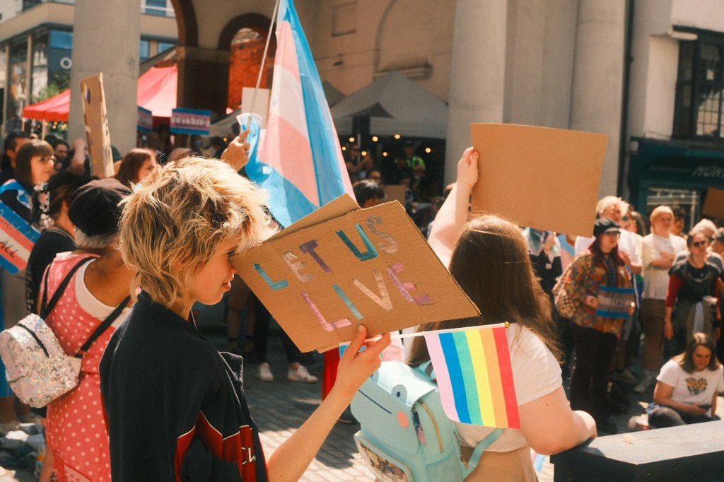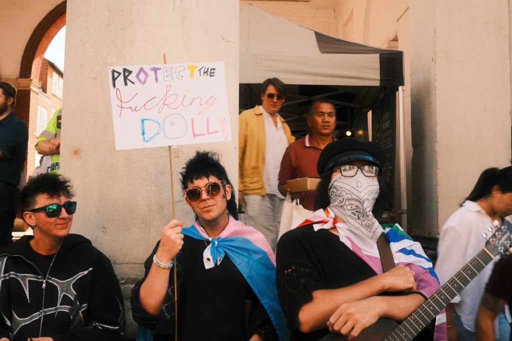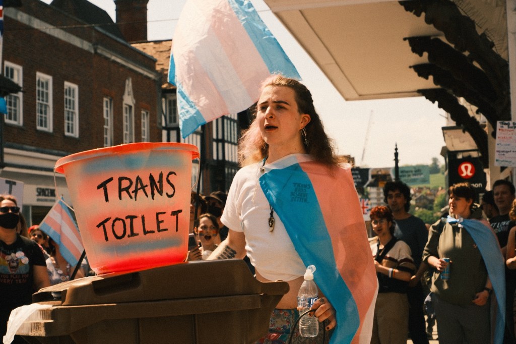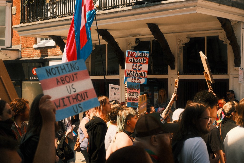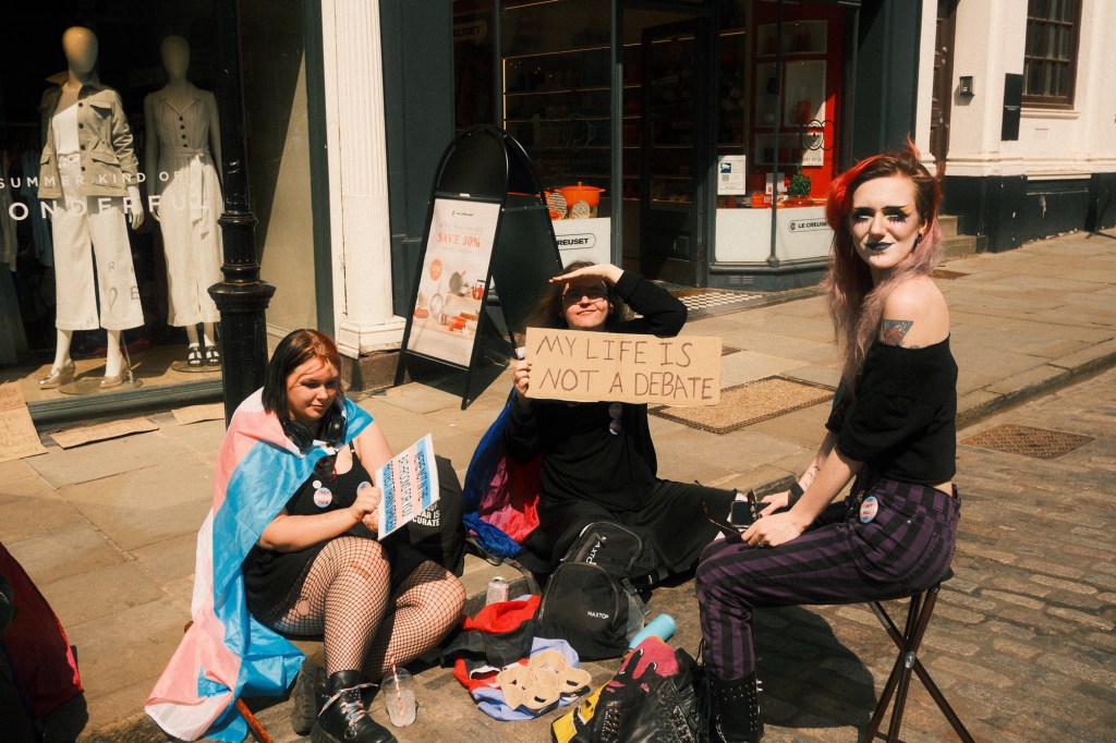 The divide between older and younger generations was super obvious, many locals were not able to pass through to the shops past the trans rally due to the sheer amount of people taking up the whole high street, and also due to the person with 2 placards obstructing passers by.